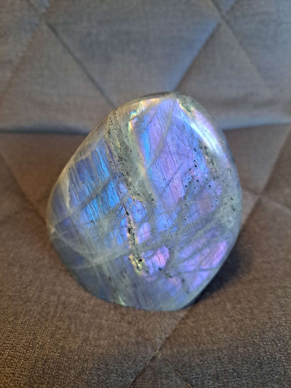 La labradorite violette est une pierre de connexion spirituelle très appréciée. Du fait de sa rareté, sa beauté et sa puissance, cela en fait une pierre idéale pour travailler sur votre chakra du 3ème œil et du coronal. Vous pouvez la purifier dans l'eau ou par fumigation. Elle se recharge au soleil ou sur un amas de cristal de roche.
